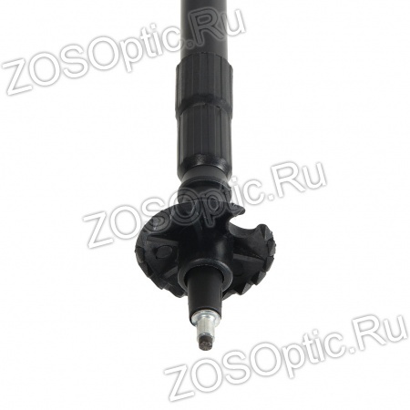 На конце опоры расположен твердосплавный наконечник со съемной резиновой ножкой. В комплект также входит диск, который накручивается на опору, и не дает моноподу проваливаться в снег.