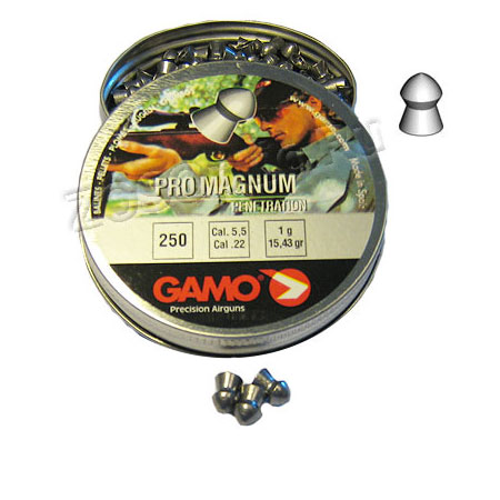 Банка пневматических пуль Gamo Pro Magnum Penetration калибра 5.5мм. В одной банке 250 пуль весом 1 грамм.