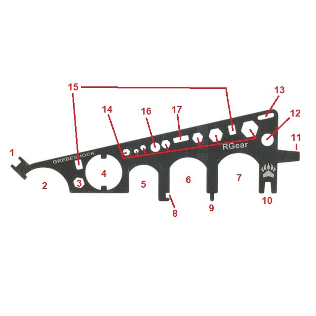 - Ключ Гребешок имеет малые габариты и легкий вес, при этом вмещает на своей рабочей площади 24 инструмента;