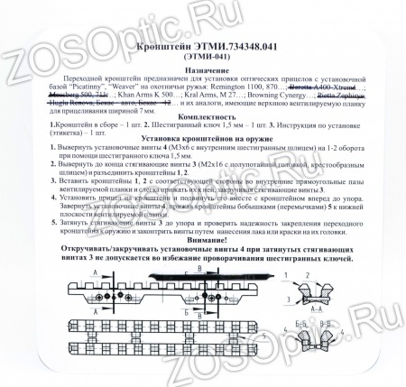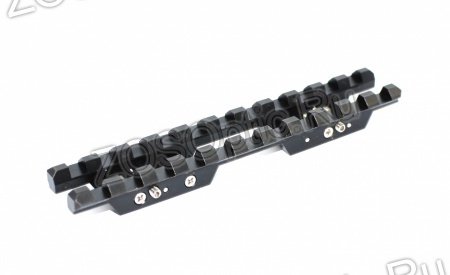 Переходной кронштейн ЭТМИ-041 предназначен для установки оптических прицелов с установочной базой “Picatinny”, “Weaver” на охотничьи ружья: Remington 1100, 870…; Khan Arms K 500…; Kral Arms, M 27…; Browning Cynergy… и их аналоги, имеющие верхнюю вентилируемую планку для прицеливания шириной 7 мм.