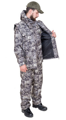 Мужской костюм для охоты, рыбалки, туризма и отдыха. Состоит из куртки-ветровки с брюками и утепленного жилета, который можно одеть поверх куртки в прохладные летние дни. В десяти разгрузочных карманах жилета можно разместить огромное количество нужных мелочей.