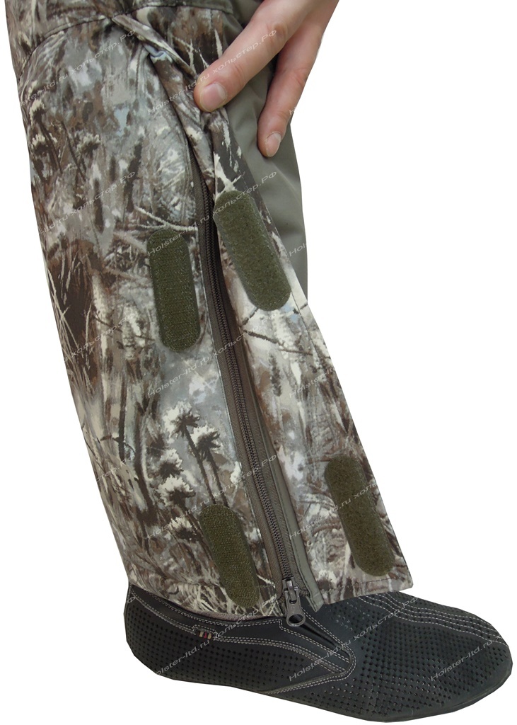 - объемный набедренный карман под рыбацкие принадлежности